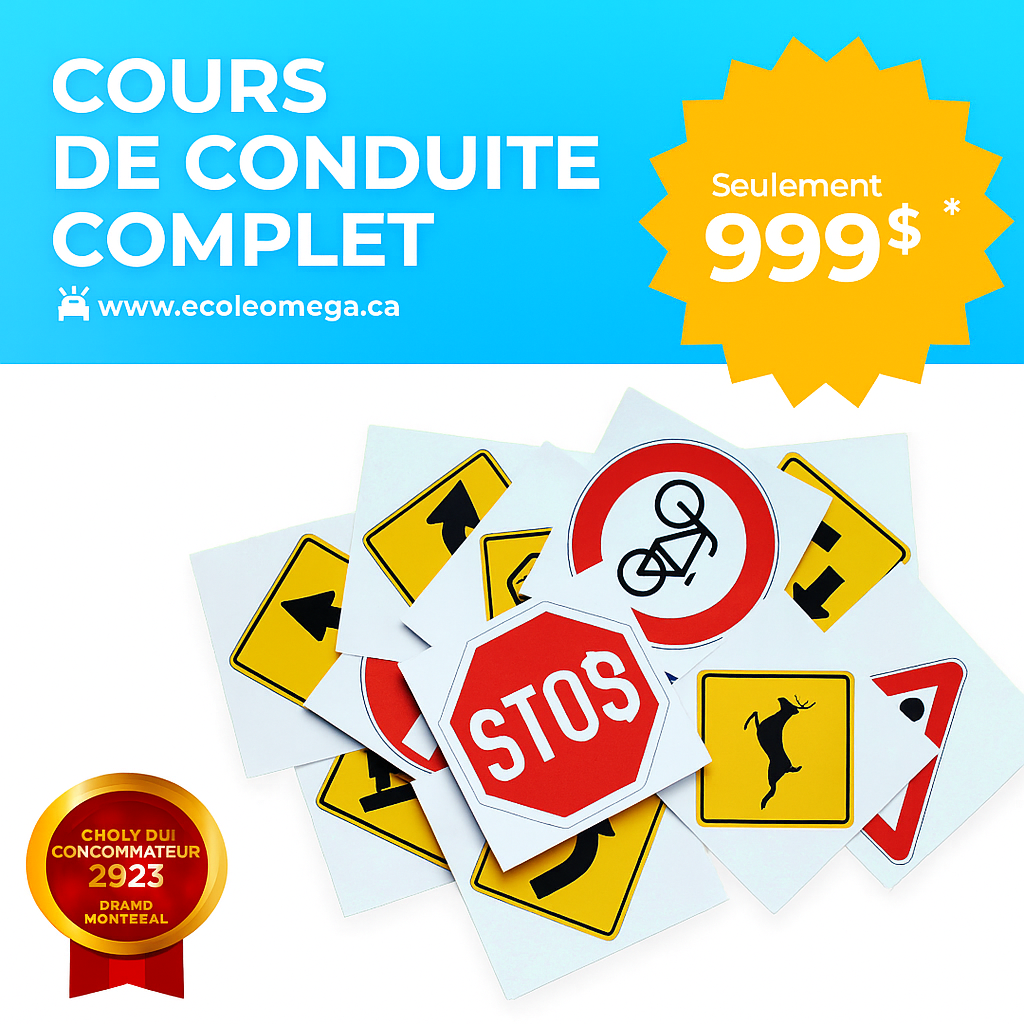 Ce cours de conduite complet régulier se détaille désormais en quatre (4) étapes distinctes, incluant vingt-quatre (24) heures de cours de théorie maintenant donné en ligne via ZOOM et quinze (15) heures de cours de pratique sur la route. La durée désormais imposée par la nouvelle loi est d’un minimum de treize (13) mois. Ainsi, durant ce minimum de temps, l’apprenti conducteur devra accomplir en alternance les divers cours pratiques et théoriques du programme. Les cinq (5) premières semaines du cours de conduite ont pour but de préparer l’élève à obtenir son permis d’apprenti conducteur communément appelé «permis temporaire». Vous pouvez dès l’âge de quinze (15) ans vous inscrire (avec une autorisation parentale) à ce cours (appelez nous pour les détails) et débuter la première phase qui se veut préparatoire au permis d’apprenti. Dès que vous atteindrez l’âge de seize (16) ans, vous pourrez poursuivre toutes les leçons de conduite incluant celles sur la route avec un moniteur accompagnateur.